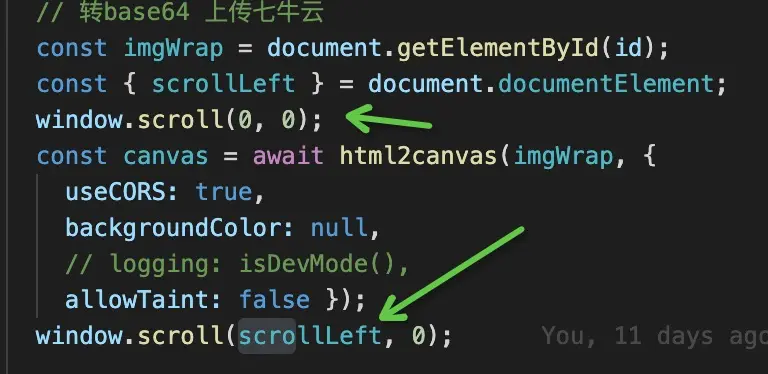 解决:通过查阅得知,白边主要是因为滚动条出现的缘故,解决思路:用html2canvas转图片之前,先记录当前scrollLeft距离,然后滚动至距离浏览器最左上侧(0,0)处,待图片转成功后,回到之前的(scrollLeft,0)处