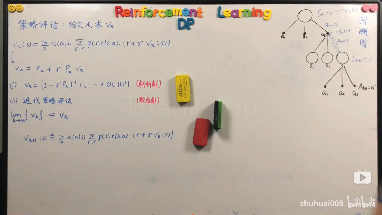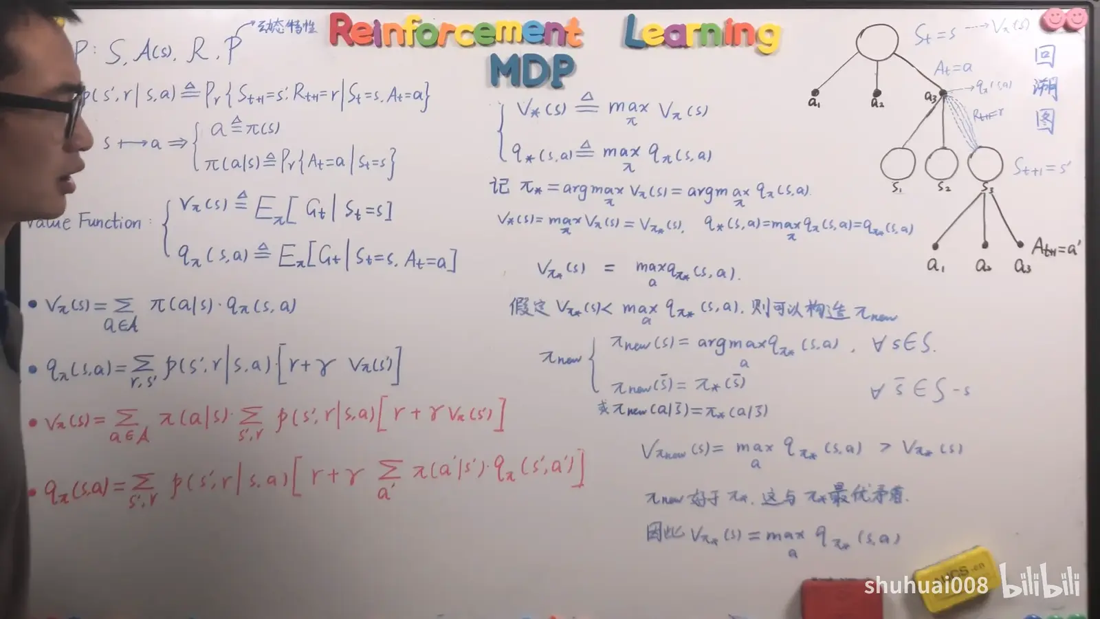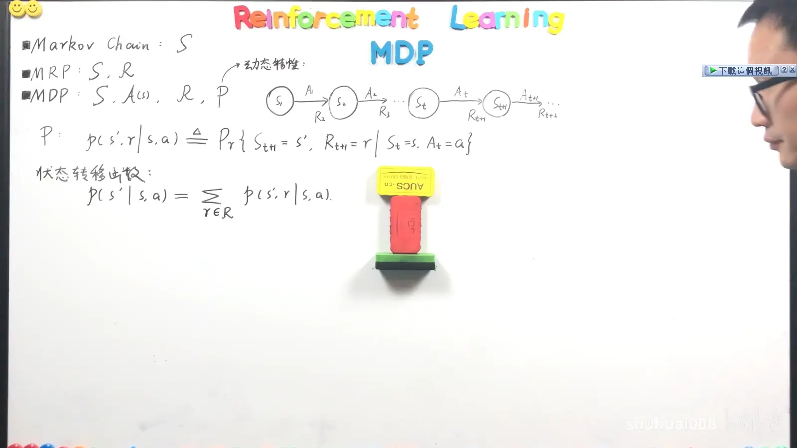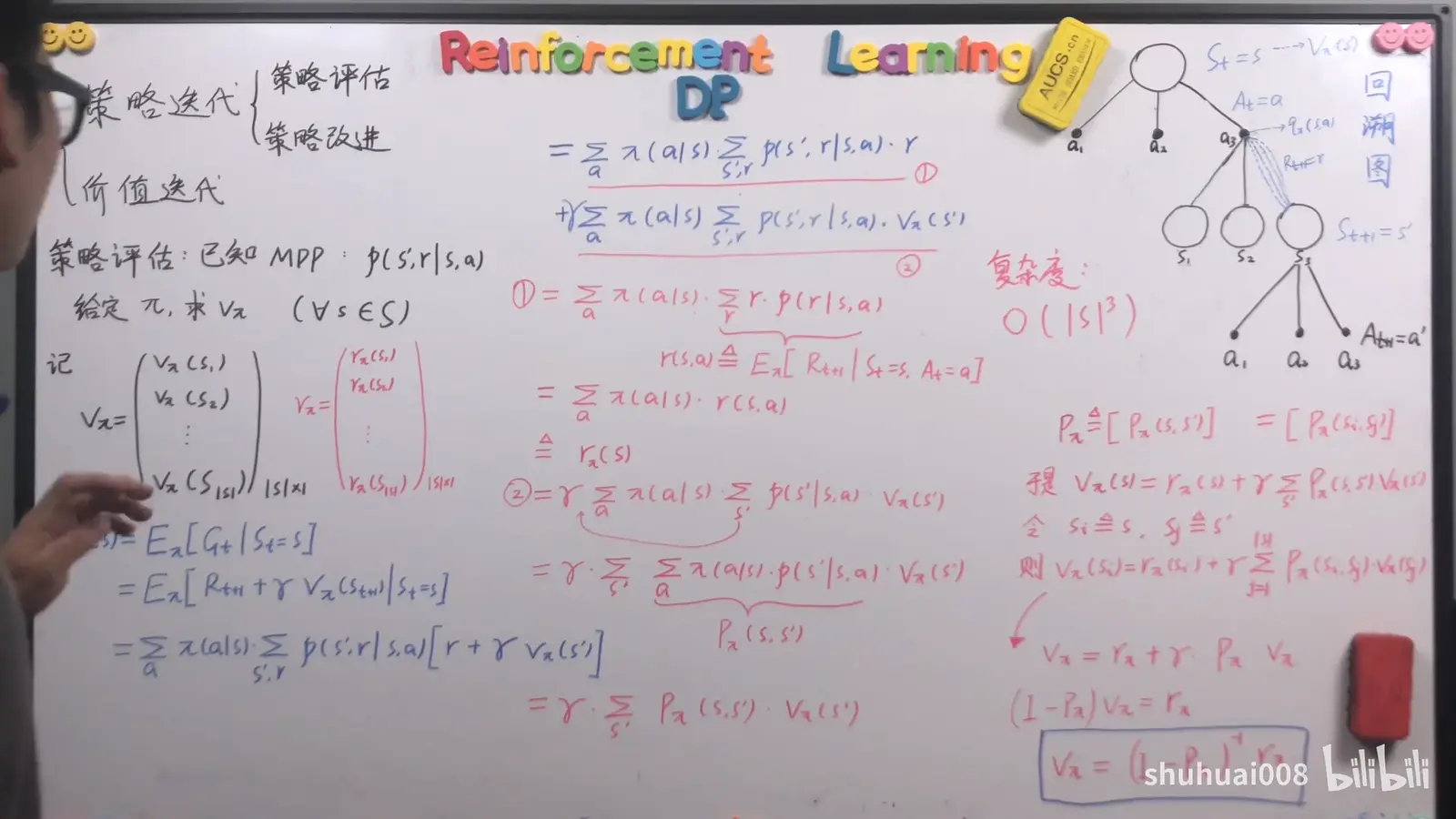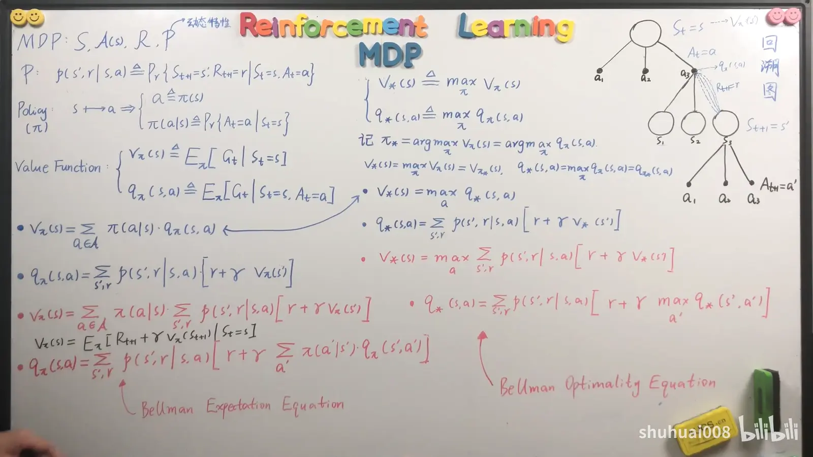 白板推导系列~ 强化学习之马尔科夫决策过程&动态规划 赤西沽 2020-07-22 541 阅读1分钟 强化学习-MDP(1)-背景介绍 state space model其实就是一条马尔科夫链+观测 强化学习-MDP(2)-动态特性 MRP:市场经济 MDP:改革开放 强化学习-MDP(3)-价值函数 强化学习-MDP(4)-贝尔曼期望方程 强化学习-MDP(5)-贝尔曼最优方程 强化学习-DP-1-策略评估-解析解 强化学习-DP-2-策略评估-迭代解 强化学习-DP-3-策略改进定理 强化学习-DP-4-策略改进-贪心策略 强化学习-DP-5-价值迭代