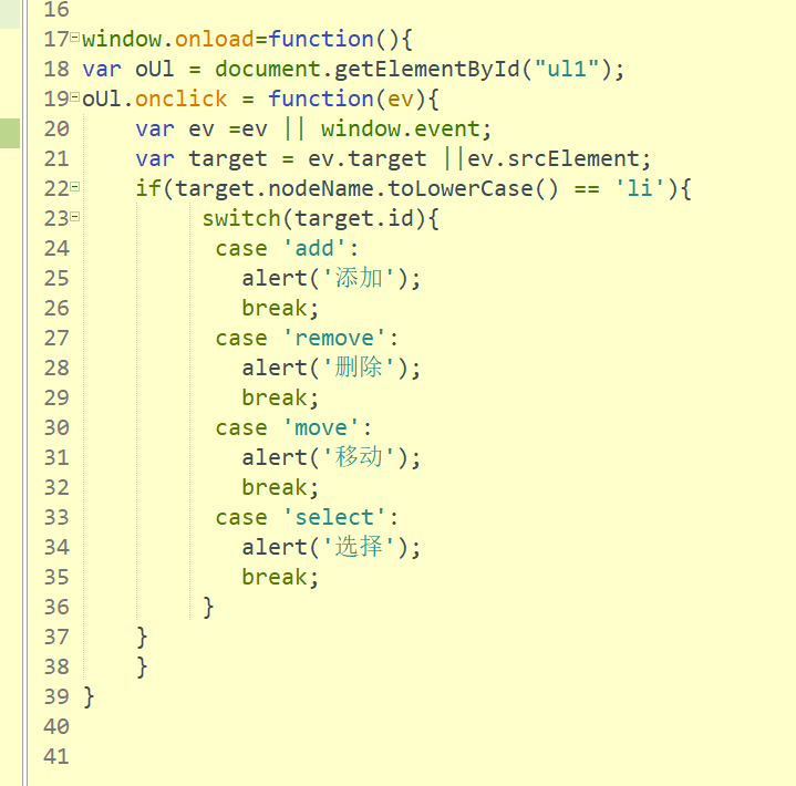 例子:利用事件委托做个ul,li列表,实现每个li有不同功能