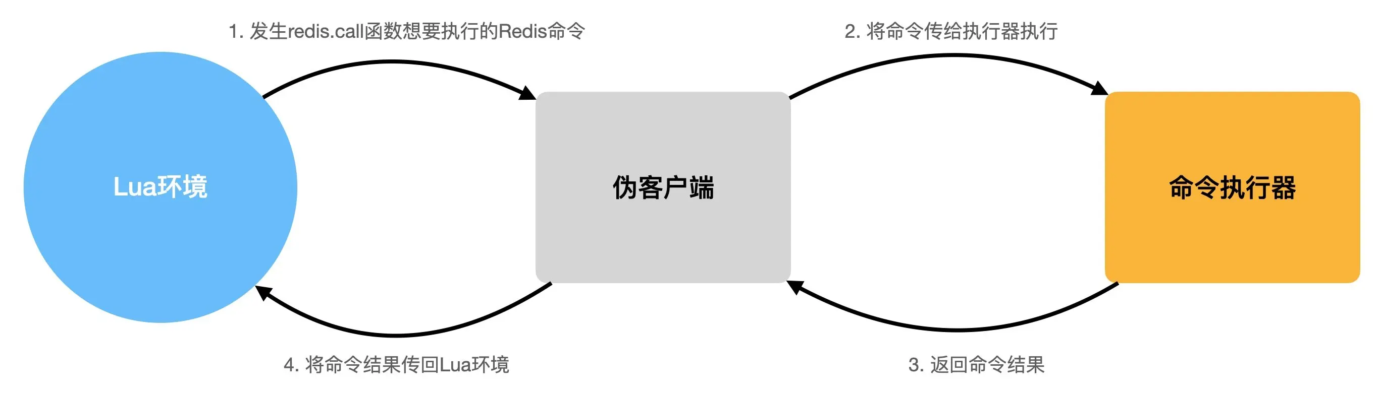 因为执行Redis命令必须有相应的客户端,所以Redis服务器专门为Lua环境创建看一个伪客户端,由这个伪客户端负责处理Lua脚本中包含的所有Redis命令
