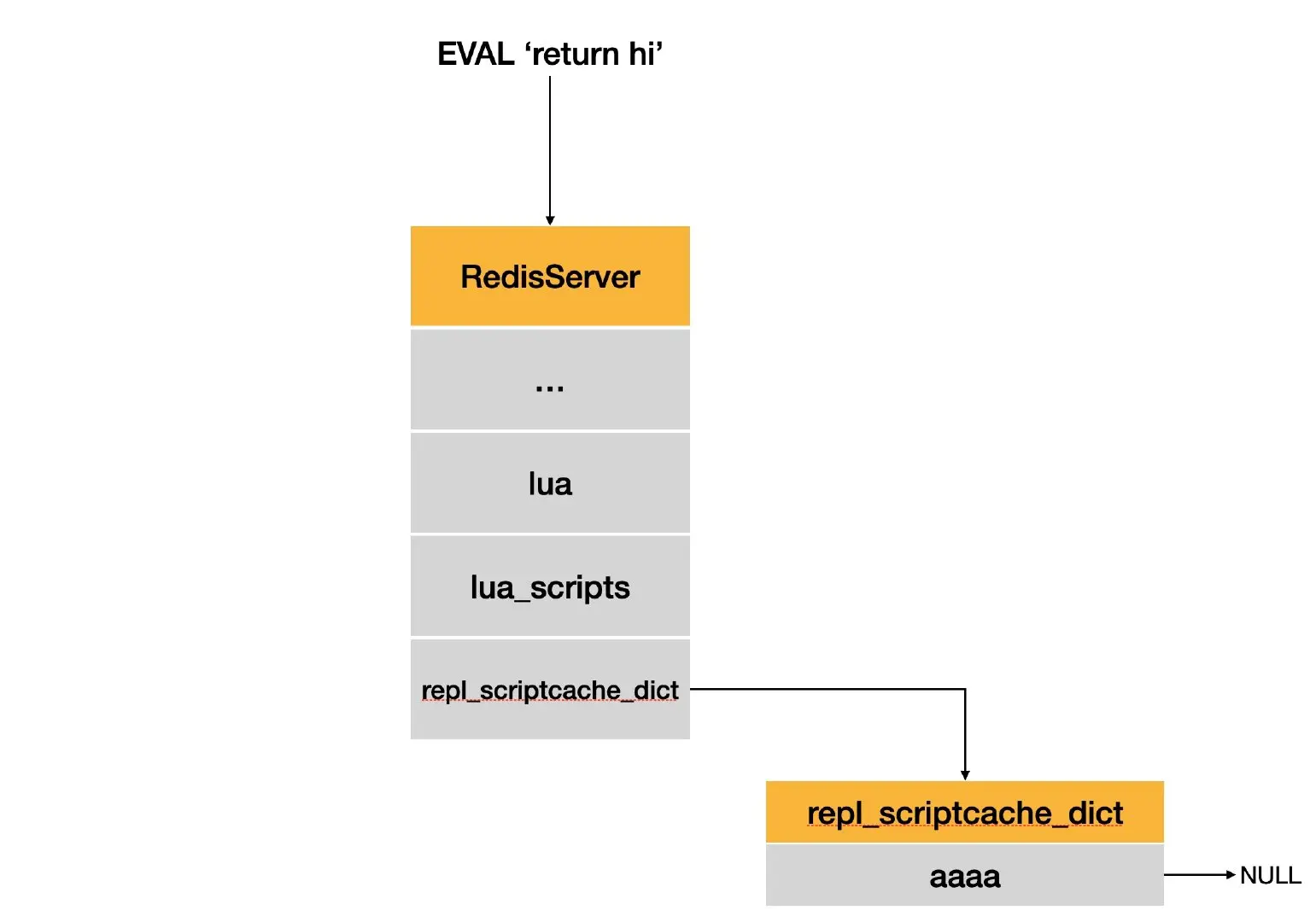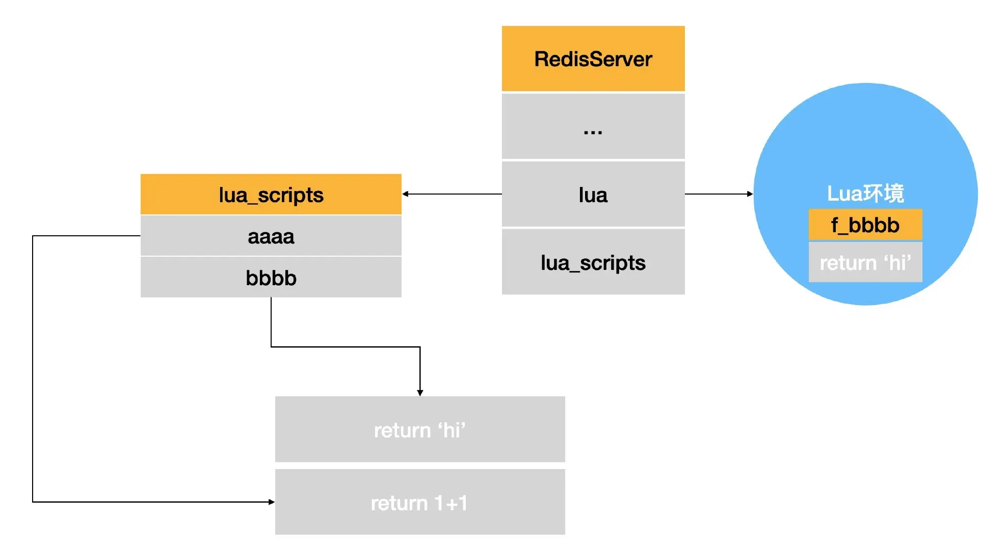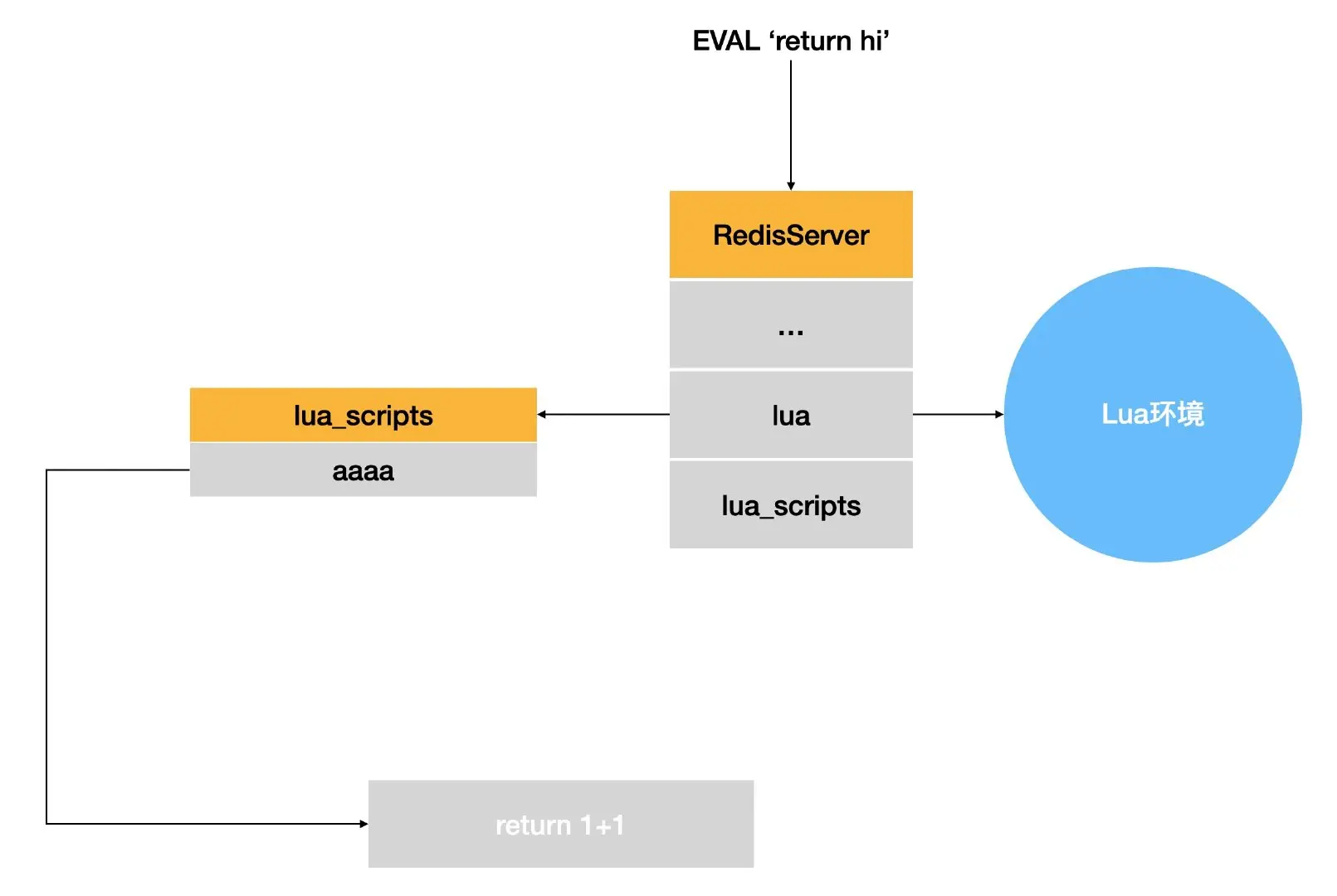 除了伪客户端之外,Redis服务器还创建了一个lua_scripts字典,键为某个lua脚本的SHA1校验和,值为对应的lua脚本内容
