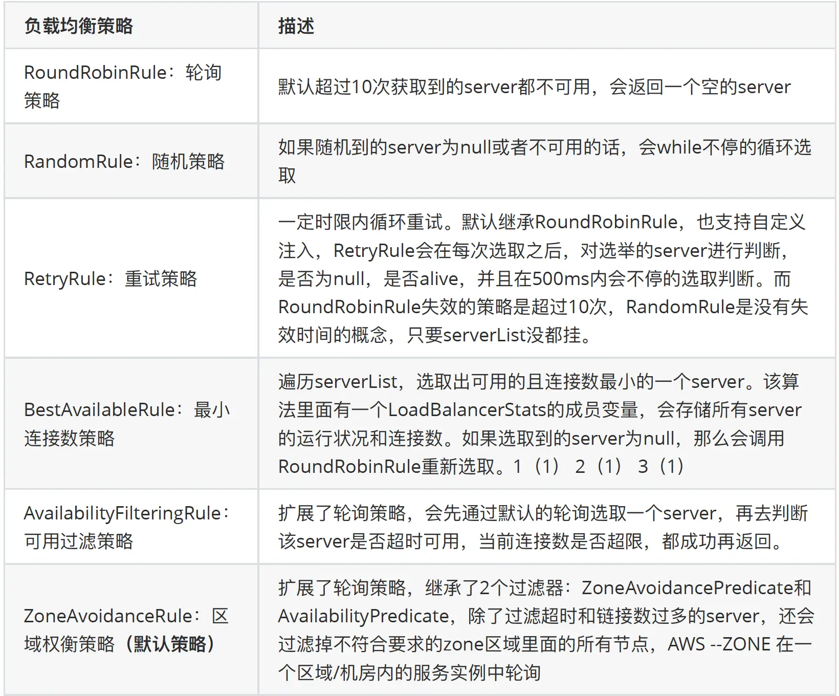 - IRule:是在选择实例的时候的负载均衡策略对象