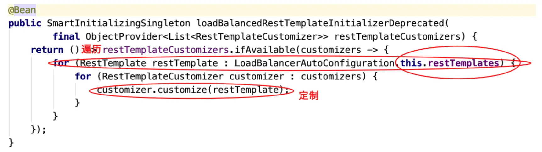 - 使⽤定制器给集合中的每⼀个resttemplate对象添加⼀个拦截器