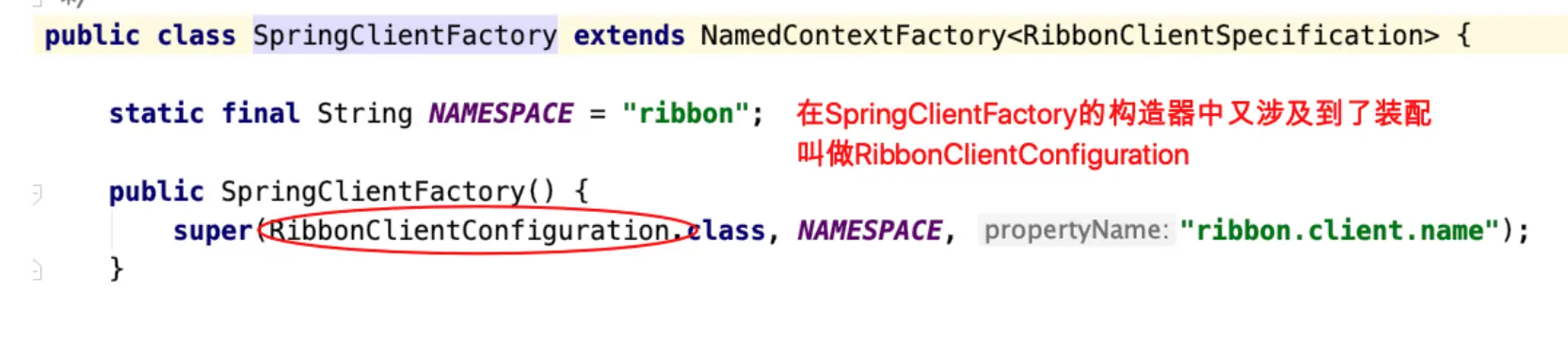 - 回到 org.springframework.cloud.netflix.ribbon.RibbonAutoConfiguration#springClientFactory 这里装配了RibbonClientConfiguration