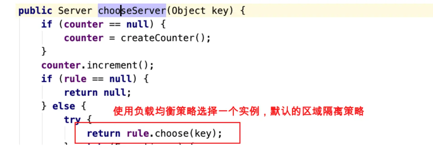 - com.netflix.loadbalancer.ZoneAwareLoadBalancer#chooseServer