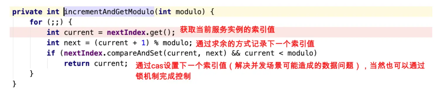 - 进入com.netflix.loadbalancer.AbstractServerPredicate#incrementAndGetModulo