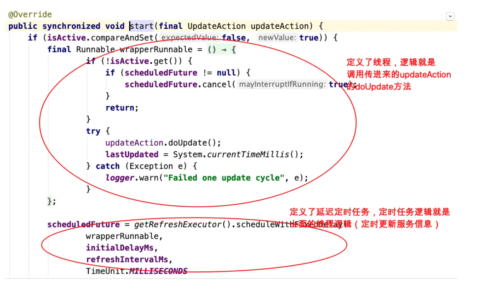 - ServerListUpdater:定义了⼀系列的对服务列表的更新操作