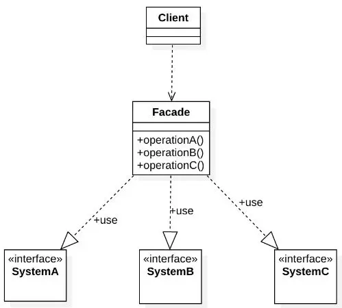 GOF对外观模式的描述为: Provide a unified interface to a set of interfaces in a subsystem. Facade defines a higher-level interface that makes the subsystem easier to use. — Design Patterns : Elements of Reusable Object-Oriented Software