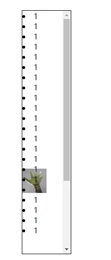 #wrapper { width: 100px; height: 500px; margin: 100px; overflow: auto; border: 1px solid black; } #wrapper div { height: 700px; overflow: auto; background-image: url('./hand.jpg'); background-repeat: no-repeat; background-position: left; background-size: 50px 50px; background-attachment: local; }当内层div的内容(li)所形成的虚拟盒子高度没有超过该内层div的高度,那么local和scroll效果是一样的