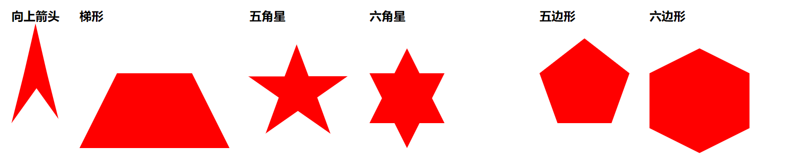 css 制作梯形, 五角星, 六角星, 五边形,六边形