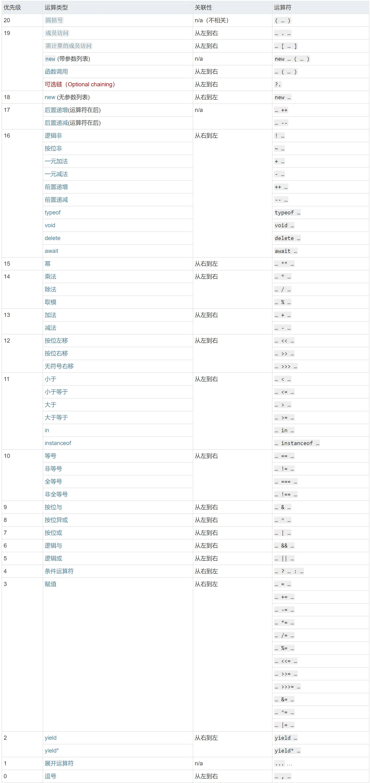 赋值的优先级3,成员访问的优先级是19
