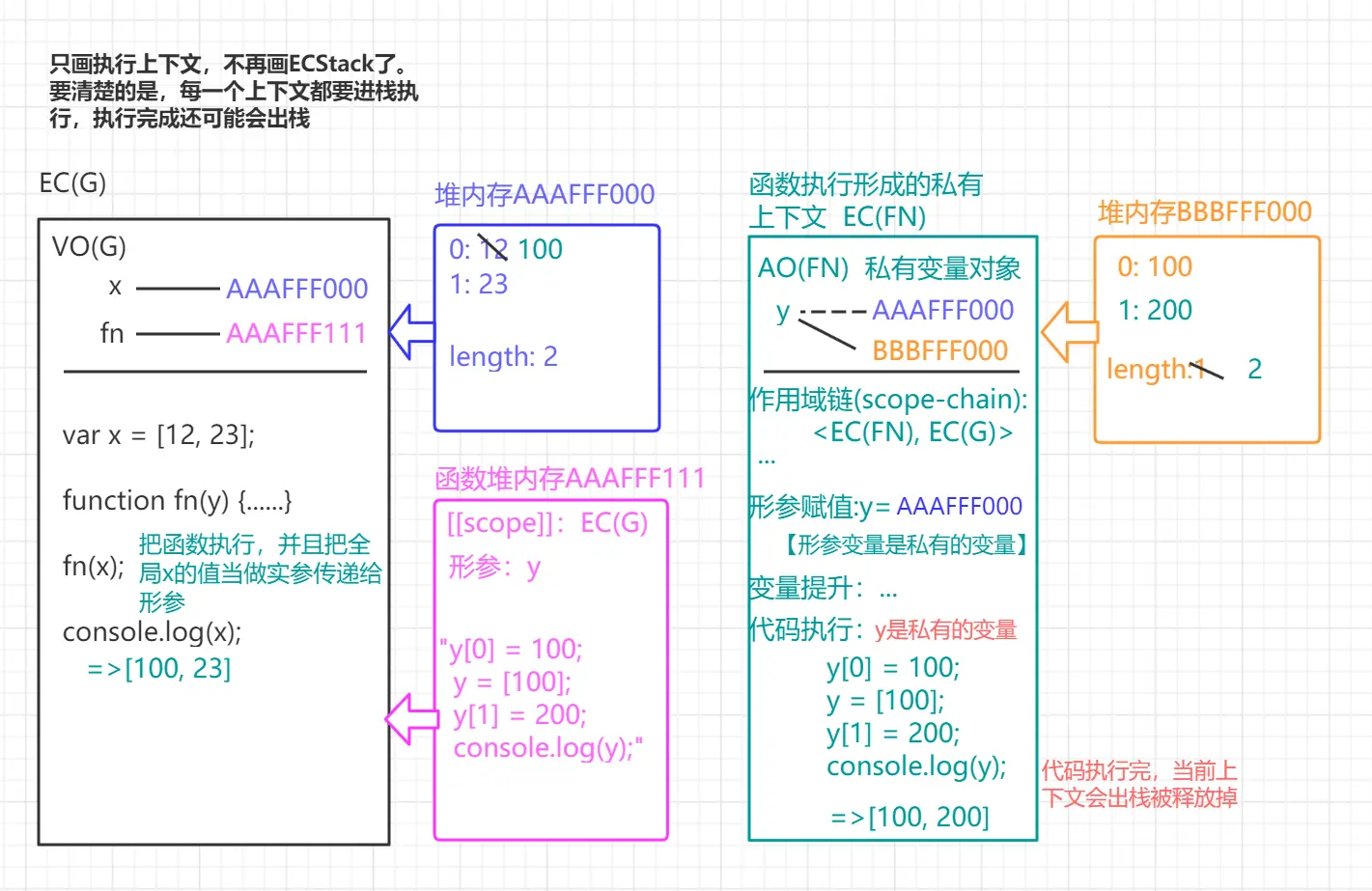 //fn(x);//函数第二次执行,会形成一个全新的私有上下文,把之前做过的事情,还原封不动的再执行一次(所有的东西都是从头来一遍的),此时形成的上下文和上一次形成的上下文之间没有必然的联系。