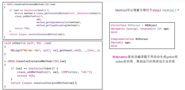 // and [cls resolveInstanceMethod:sel]