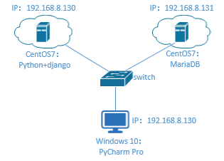| 1 | 192.168.8.130 | CentOS 7.6.1810 | python3.6+django2.2 | 都运行在虚拟环境 |