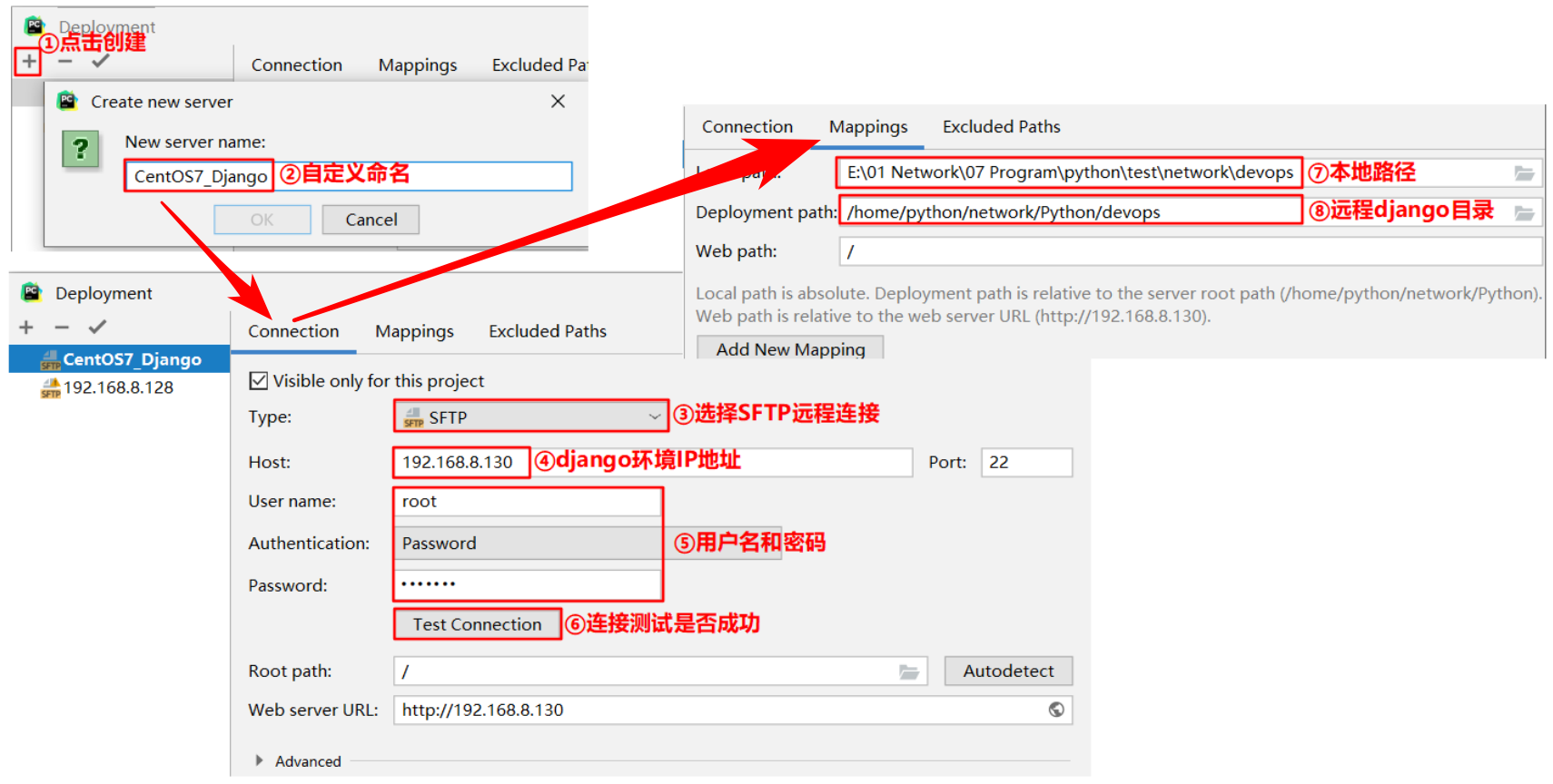 | 3 | 192.168.8.1 | windows 10 | PyCharm Pro | 专业版能够使用与centos远程同步配置 |