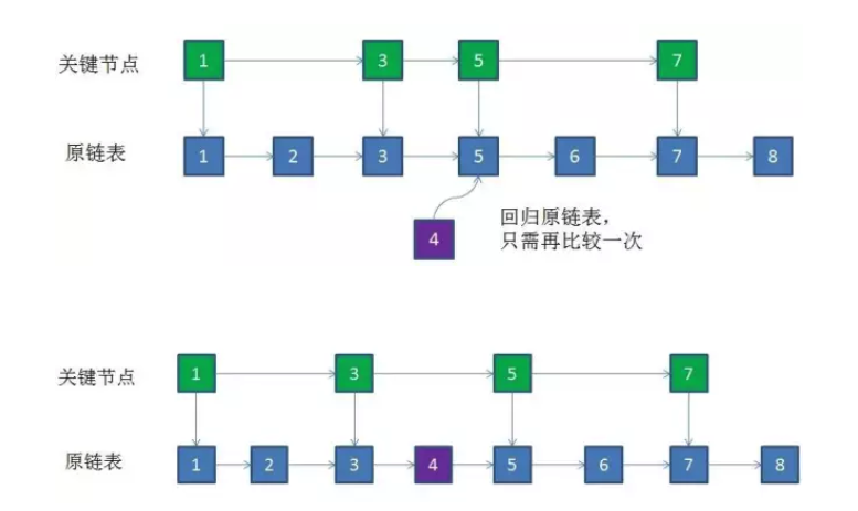 跳表的思想就是利用了类似索引的思想,提取出链表中的部分关键节点,然后再用二分查找。