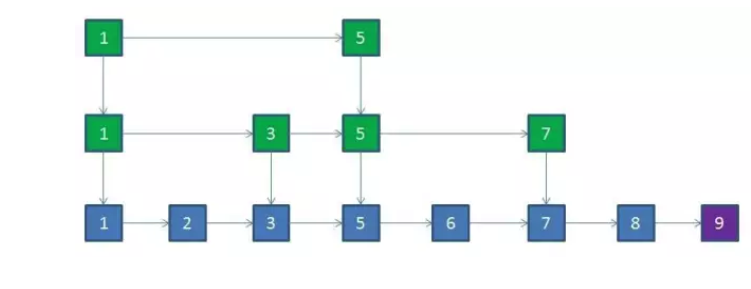 到这里,多层链表结构就提取完了,这就是跳跃表。