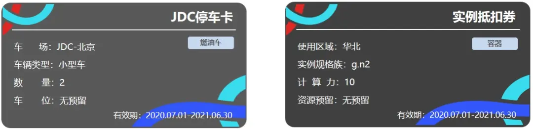 回到现实,虽然例子中这样的“停车卡”京小云还没听说哪里有卖,车主朋友们可能还要再等等。但如果你是京东智联云的用户,那么与其功能类似的“实例抵扣券”你可以即刻拥有。