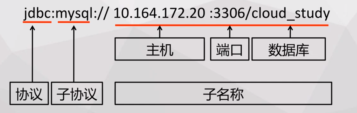 JDBC URL是后端数据库的唯一标识符。它是由“协议:子协议://子名称”这样格式的字符串组成的。而子名称中又包含了主机、端口和数据库,如下: