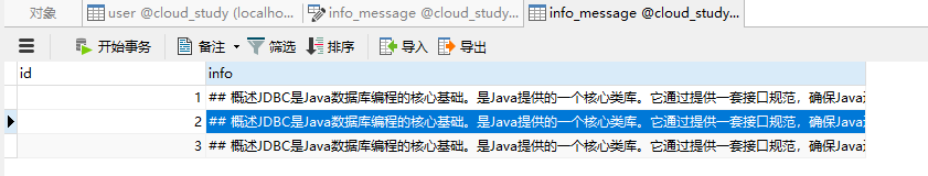 这时我们查看数据库,应该就能看到三条新增的用户了。(这里需要注意的是,需要设置id为自增id,否则会报主键不存在的错误)