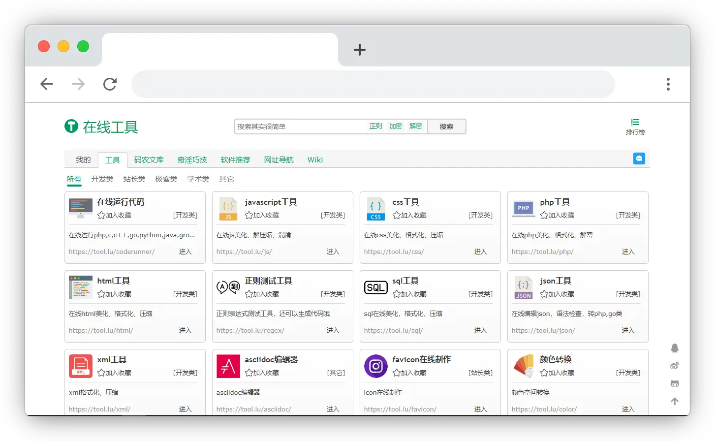 这真的是程序员的福音啊,里面提供了很多程序员可以用到的小工具啊,包括在线代码编辑器、加密工具、json格式化工具、二维码生成工具等等在线小工具,我也是经常用会用到其中的一些工具的,对于程序员来说,这个工具箱还是非常实用的!