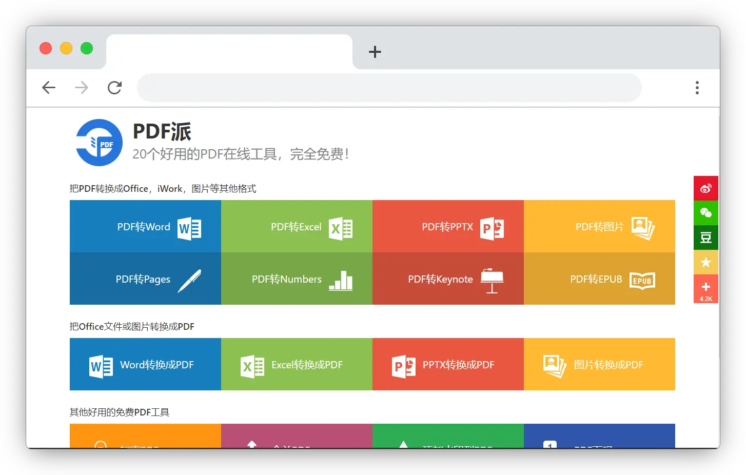 PDF派提供20种PDF在线小工具,PDF转word,PDF转图片,PDF加水印等等多种小工具集合,非常实用。