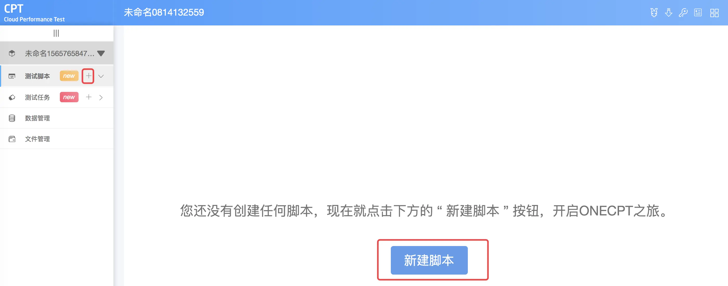 1.新建脚本:点击测试脚本右侧的+,或者展开测试脚本菜单,点击右侧的新建脚本;