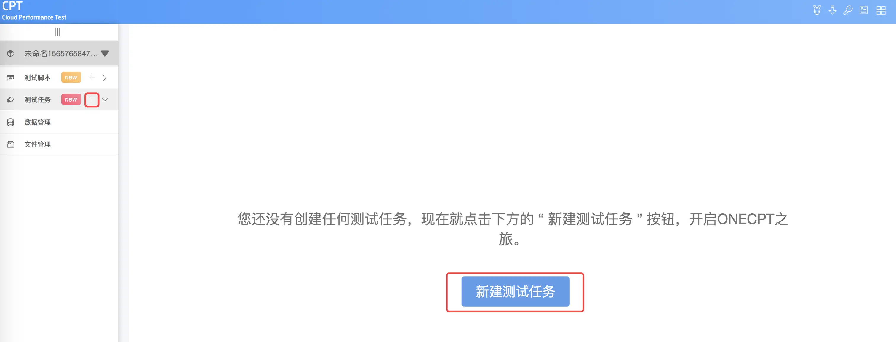 1.新建任务:点击测试任务右侧的+,或者展开测试任务菜单,点击右侧的新建测试任务;