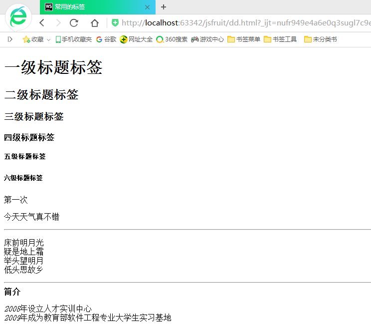 标题标签 ,段落标签,水平线,换行,加粗,斜体