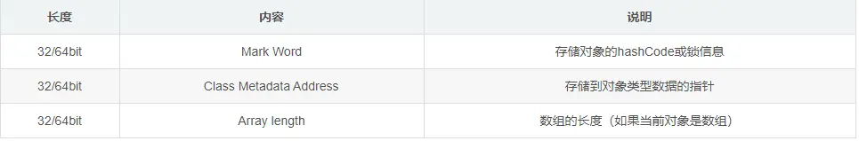 对象头的长度有两种,分别是3字宽和2字宽(1字宽=4字节=32bit),3字宽的长度对应的对象类型是数组类型,非数组类型使用2字宽