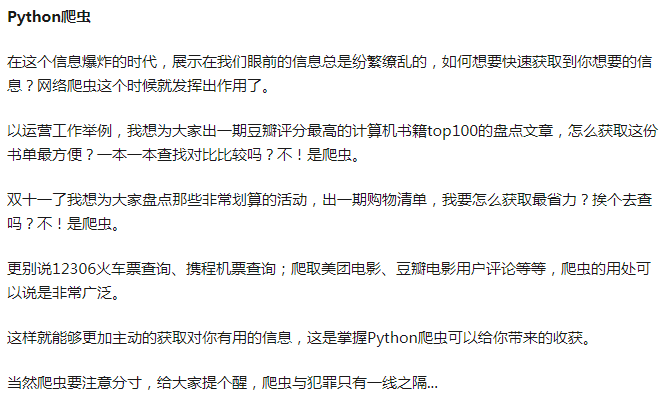 2.配置Python学习环境 Python2还是Python3 ?很多人都在纠结入门应该学Python2还是Python3。这其实不是个问题。我从没听过某个人是Python2程序员员或Python3程序员。二者只是程序不兼容,思想上并无大差别,语法变动也并不 多。选择任何一个入手,都没有大影响。 如果你仍然无法抉择,那请选择Python3 ,毕竟这是未来的趋势.