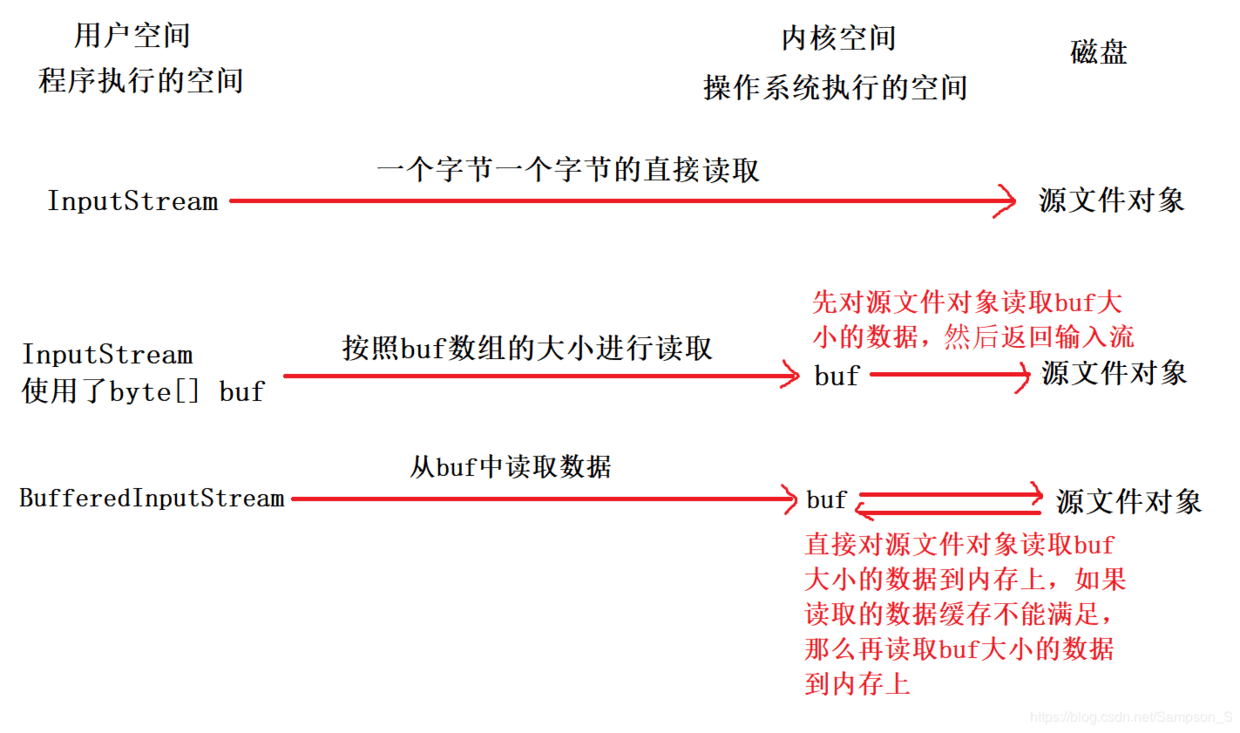 使用它们可以防止每次读取/发送数据时进行实际的写操作,代表着使用缓冲区。我们有必要知道不带缓冲的操作,每读一个字节就要写入一个字节,由于涉及磁盘的IO操作相比内存的操作要慢很多,所以不带缓冲的流效率很低。带缓冲的流,可以一次读很多字节,但不向磁盘中写入,只是先放到内存里。等凑够了缓冲区大小的时候一次性写入磁盘,这种方式可以减少磁盘操作次数,速度就会提高很多!