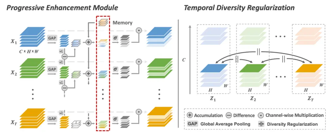 二是设计了一种时序多样性损失函数(TD Loss)来强制卷积核关注并捕捉帧间的变化而不是表观相似的区域。