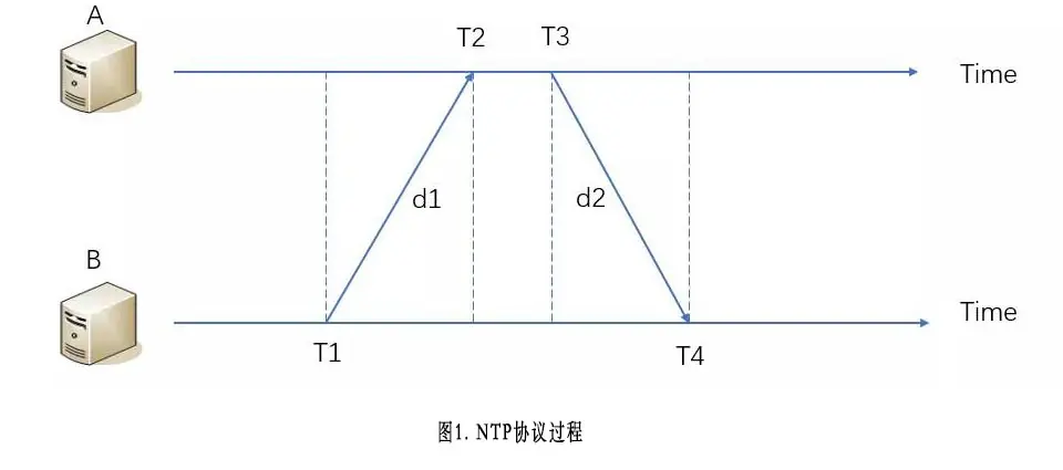 NTP协议的提出是为了解决这样一个问题:已知有一个基准服务器A,A的时间是准确的,怎么通过网络让B本地时钟跟A对齐?