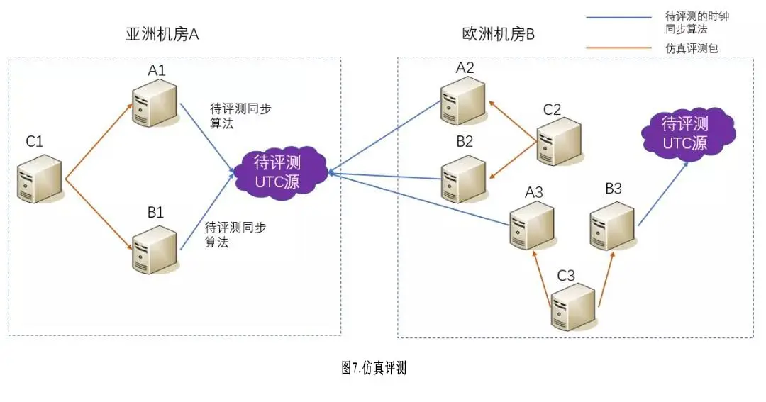 图7简单描述了前面所说的3种评测场景。需要注意一点,待评测的UTC时间源可能是跟我们的机器在一个机房,也可能仅仅是同城,取决于待评测服务本身实际部署情况。