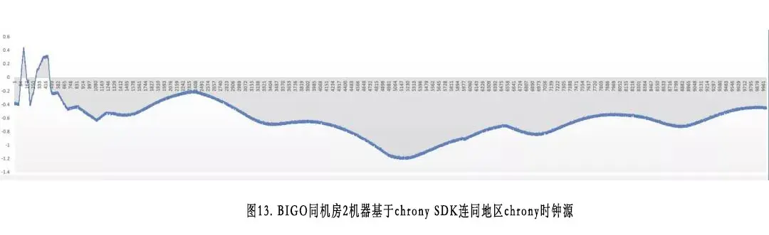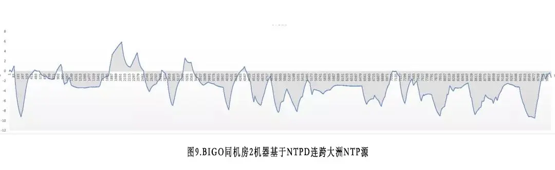 图8到图13分别为跨大洲和同机房情况下BIGO,NTP和facebook的chrony时钟同步误差测量表。