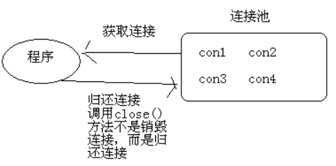 用池来管理Connection,这可以重复使用Connection。有了池,所以我们就不用自己来创建Connection,而是通过池来获取Connection对象。当使用完Connection后,调用Connection的close()方法也不会真的关闭Connection,而是把Connection“归还”给池。池就可以再利用这个Connection对象了。