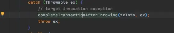 又运行了一个处理方法completeTransactionAfterThrowing,这个方法里面回去判断当前是不是最外层的事务增强,因为其实事务处理器的远离就是用了一个ThreadLocal变量,里面保存了当前获取的数据库的Connection对象,这个对象会在本线程里面一直传递,然后AOP又是一层一层嵌套的,比如ClassA套了一层,ClassB套了一层,ClassA调用ClassB,其实就是调用的时候会增加一个调用深度缓存在ThreadLocal里面,这样当ClassB调用完成推出的时候,就不会直接调用commit()方法,因为他不是最外层的调用,只有在最外面最后面返回的时候才能判断整个事务执行完没有问题,才能进行commit()提交操作,保证这一整个业务的完整性,同样回滚也是在一整个业务的最外面进行的rollback()操作。
