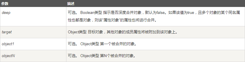 $.extend( [deep ], target, object1 [, objectN ] );