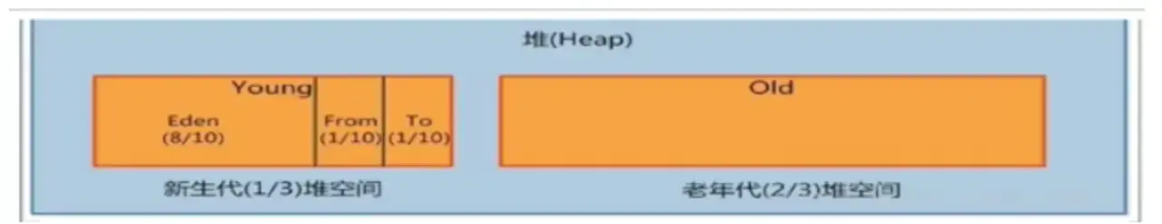 - 默认-XX:NewRatio=2,表示新生代占1,老年代占2,新生代占整个堆的1/3