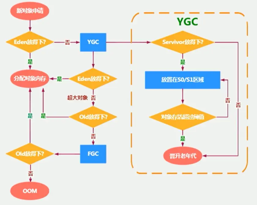 如果一个大对象在YGC后还是无法放入新生代,那么会直接放入老年代。