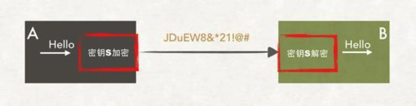 要做到消息不能被第三方查看以及篡改,那么第一想法就是对内容进行加密,同时,该消息还需要能被服务端进行解密。所以我们可以使用对称加密算法来实现,密钥 S 扮演着加密和解密的角色。在密钥 S不公开的情况下,就可以保证安全性?