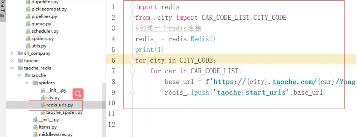 4、在spider中设置读取初始任务的代码,方法如下: