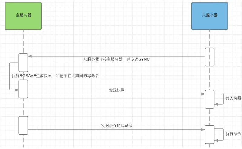 全量同步发生在slave初始化的阶段,这个阶段slave需要将master上所有的数据都复制到本节点上,全量同步的步骤: