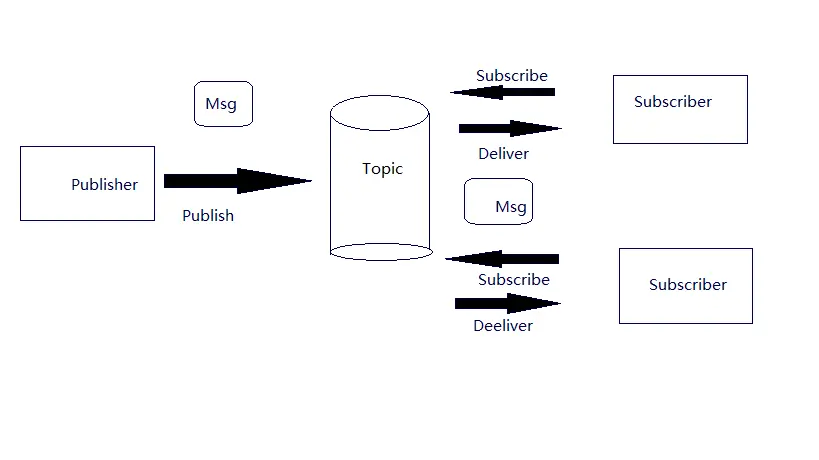 发布者发布一条消息,该消息通过主题传递给所有的订阅者。