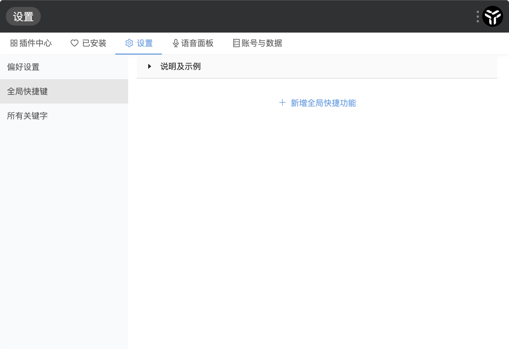 首先,你需要在「setting」中配置全局快捷键,事例如下图:
