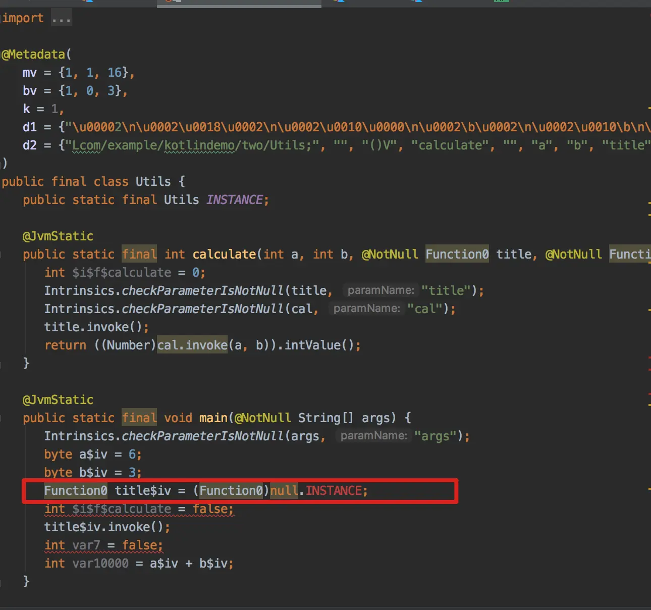 这样其实是看不出什么问题的,Kotlin 文件编译后会生成对应的 class 文件,所以我们将 class 文件反编译成 Java 文件后再看。如果使用Android Studio或者IntelliJ IDEA,可以按照如下方式查看 Kotlin 文件对应反编译后的 Java 文件: