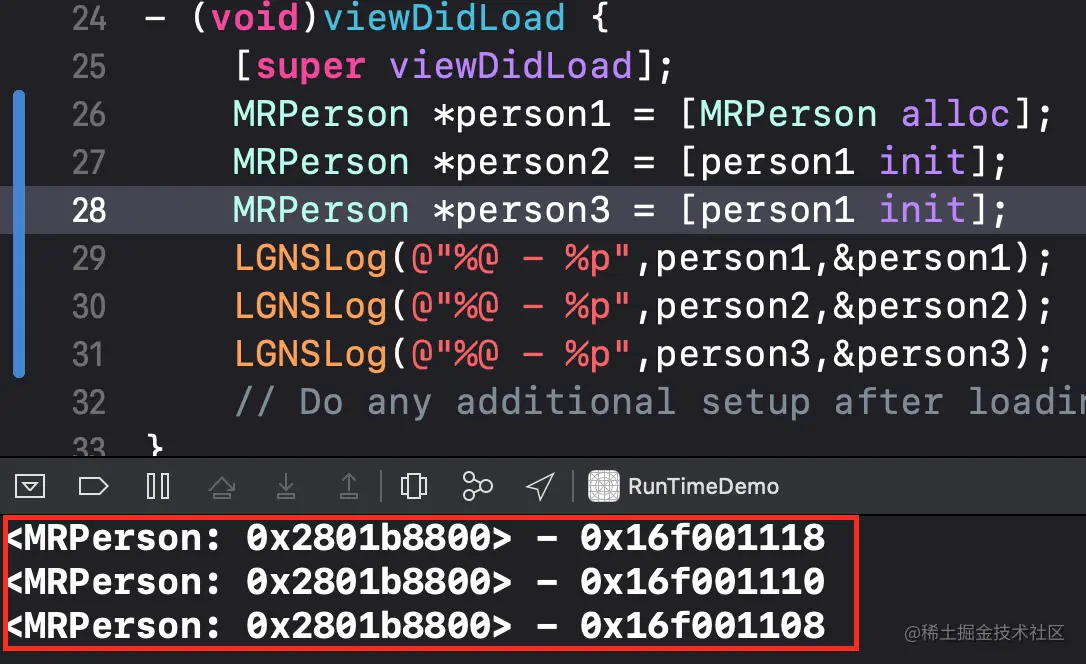 探索之前我们看一组对象,并且打印他们的内存地址和对象指针