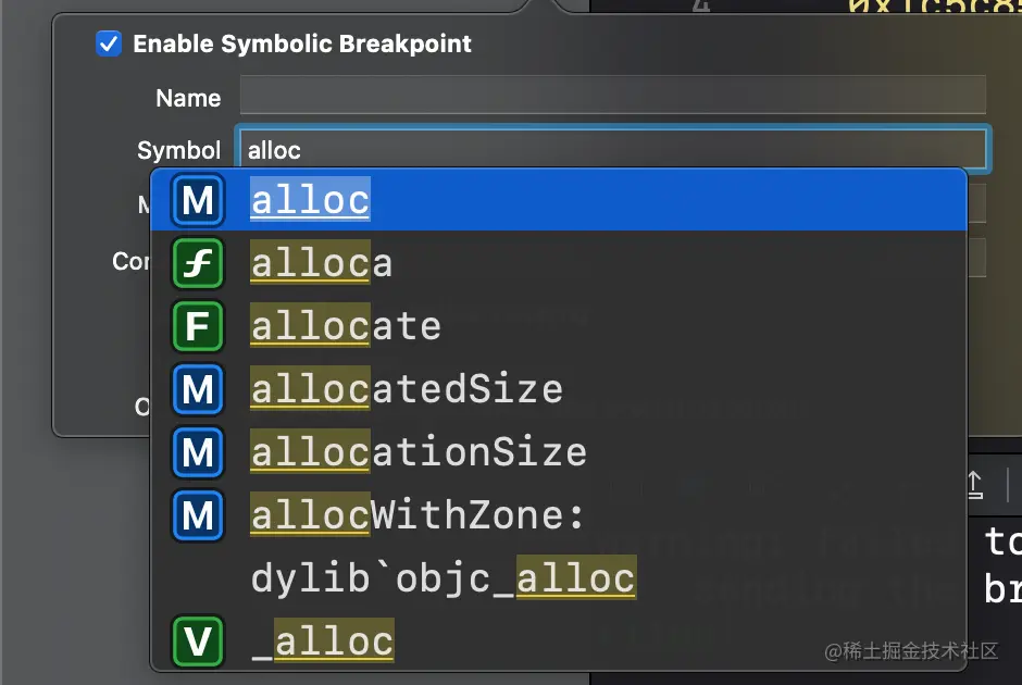 - Symbolic Breakpoint 符号断点:libobjc.A.dylib`+[NSObject alloc] 或者全局搜索alloc{