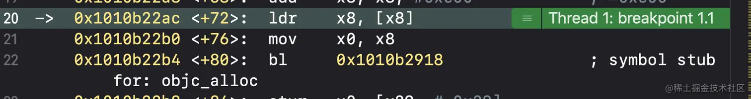 第22行打断点,按住control键,和control + in方式一样,可以跳转至下图: